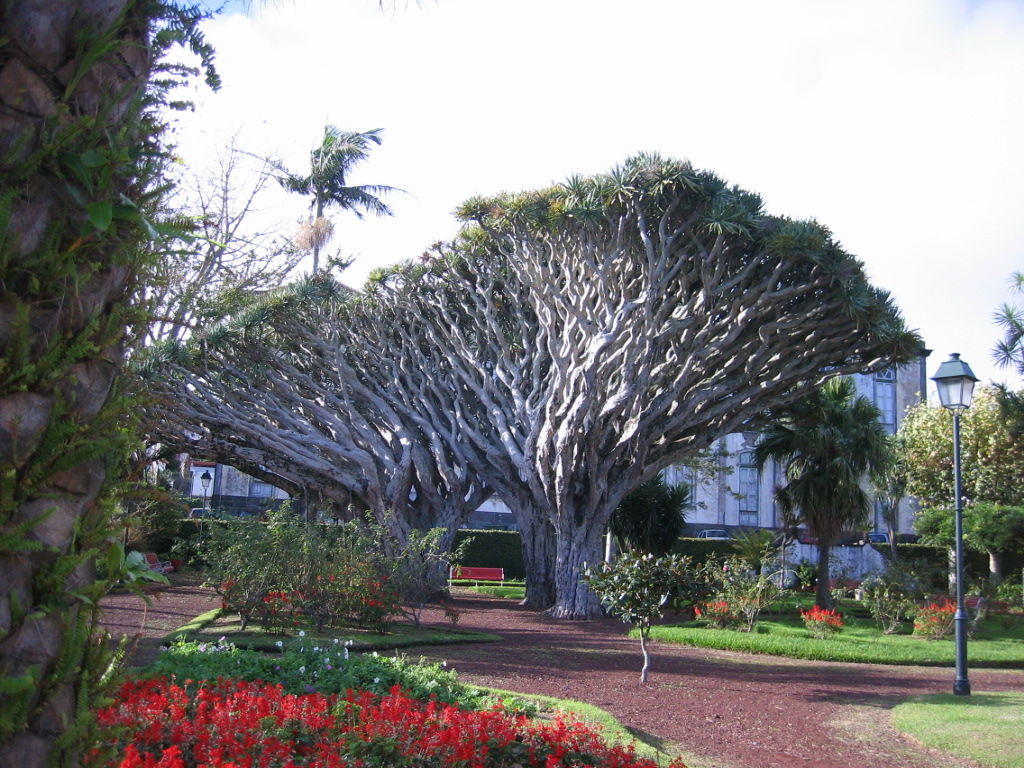 Tristes, ficaram certamente os noivos, pois é raro não ir a este jardim tirar algumas fotos em dia de enlace nupcial, o outro Dragoeiro faz falta na foto...